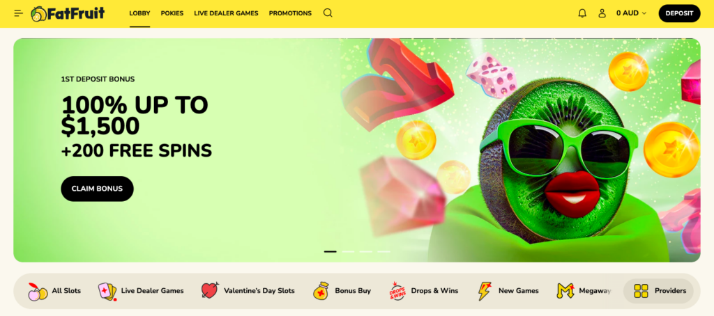 FatFruit boasts a massive library of over 5,000 pokies and more than 40 live dealer games. Players can enjoy a variety of categories, including classic slots, Megaways, Hold and Win, progressive jackpots, and live table games. The site features games from top providers such as Pragmatic Play, NetEnt, Play’n GO, Evolution Gaming, and Quickspin.